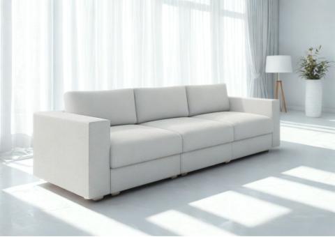 Duża modułowa sofa Life o wymiarach siedziska 240cm i głębokości 80cm. Każdy moduł to wymiar 80cm szerokości. Jest on również oddzielnie i niezależnie otwierany, dzięki czemu przez otwarcie jednego możemy uzyskać miejsce do wypoczynku z wyciągniętymi nogami. Duże poduszki oparciowe szyte na zamkach z wymiennymi wkładami.