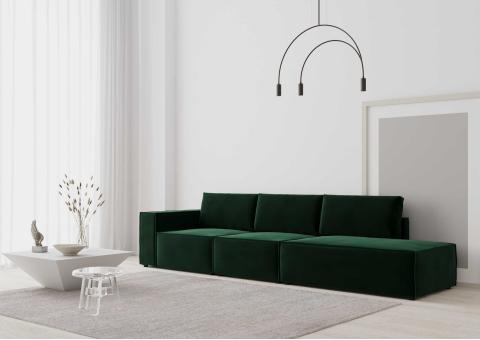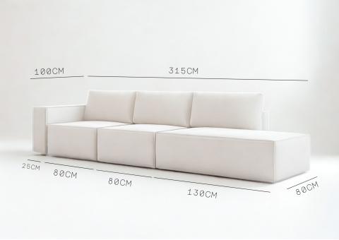 Modułowa sofa Goia to sofa, która zachwyca swoim kształtem. Idealnie nadaje się do większych wnętrz. Sofę modułową można łączyć i rozłączać tworząc z niej inne zestawy. Możesz stworzyć sofę z mniejszego i większego siedziska, oraz fotel. Dokupując u nas dodatkowe boki, poduszki zyskasz możliwość zmieniania sofy w inne mebla, w ustawieniach jakie sobie wymarzysz. Sofa modułowa jest przeszyta pięknym szwem francuskim na krawędziach. W zestawie znajdziesz 3 duże poduszki oparciowe. Kup sofę modułową Goia i ciesz się niebanalnym wyglądem i wygodą.