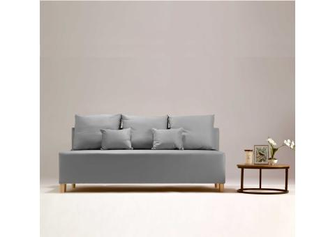 Rozkładana sofa z funkcją spania i wypełnieniem z twardej pianki oraz sprężyn bonell. Małe wymiary idealnie wpasują mebel do mniejszych pomieszczeń. Nóżki drewniane pozwolą odkurzyć pod kanapą. Skrzynia na pościel z łatwością pomieści komplet pościeli.