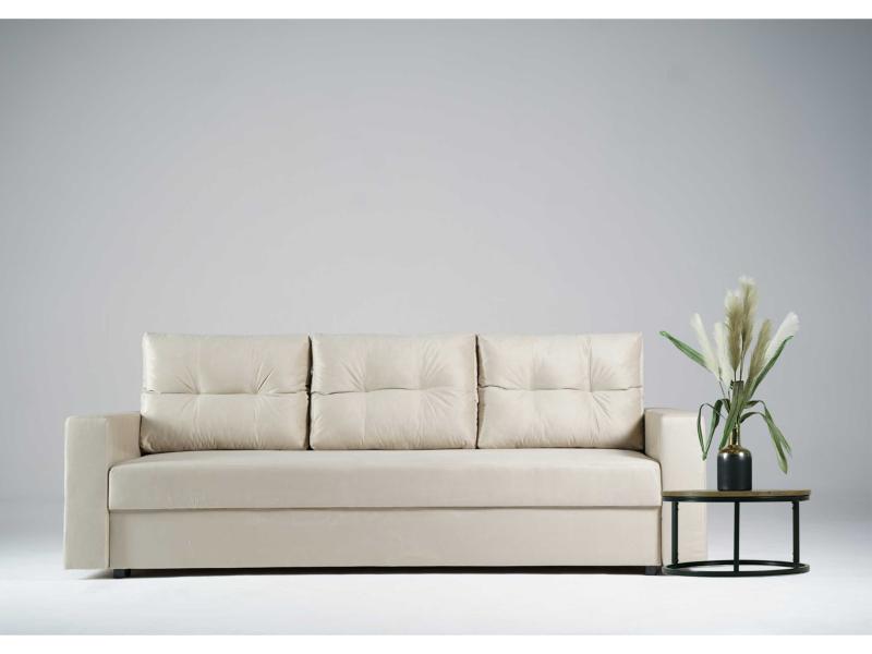 Dane techniczne: Sofa Rozkładana Trzyosobowa BORA Beżowa z Funkcją Spania do Salonu