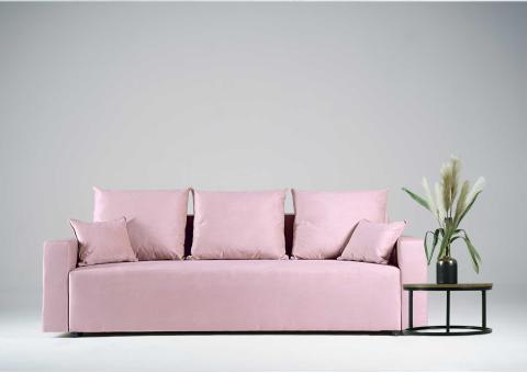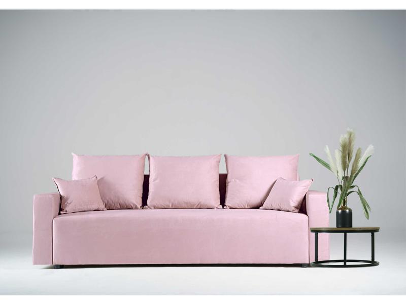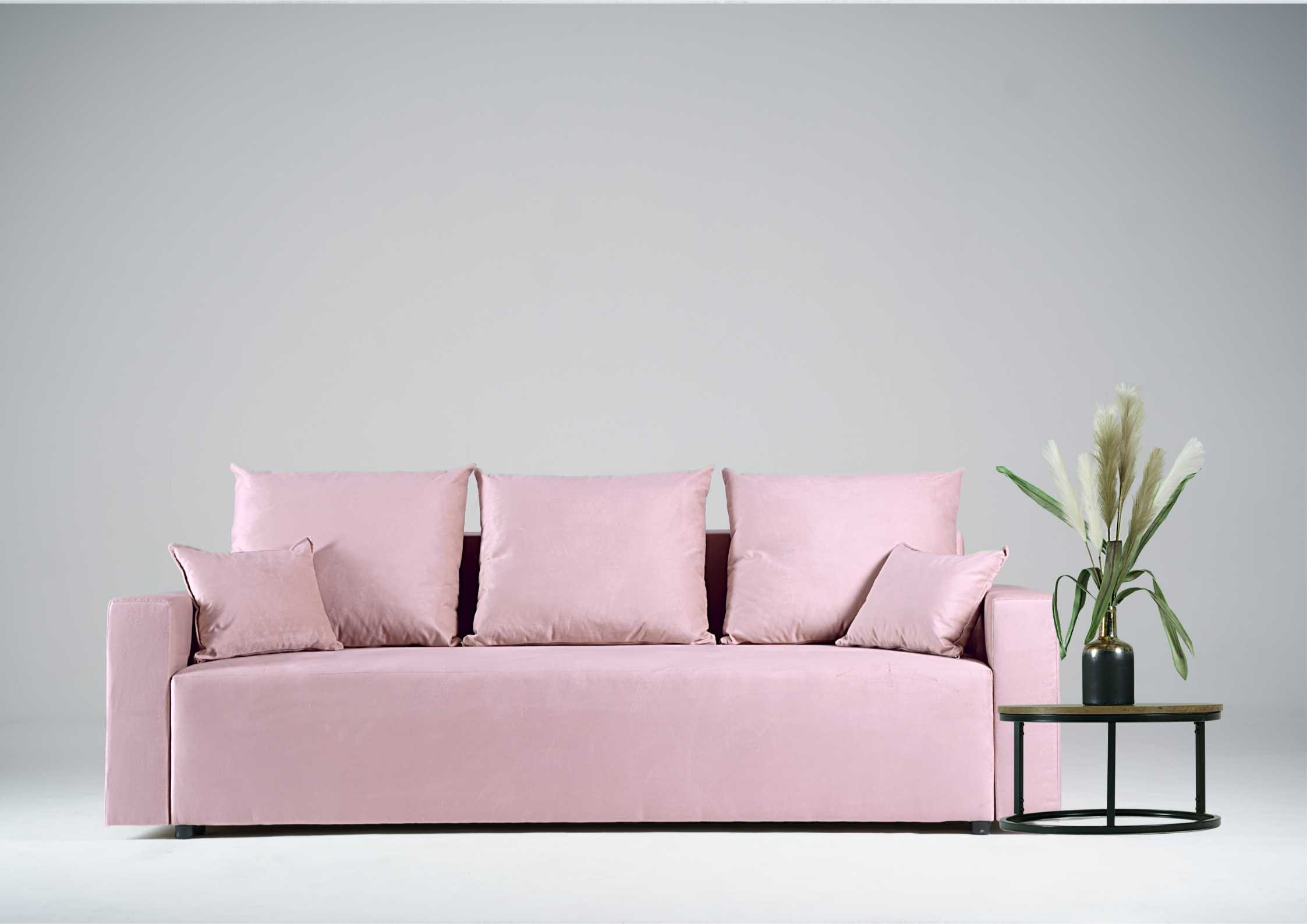 Sofa Rozkładana Trzyosobowa LILA Różowa Mała z Funkcją Spania Do Salonu