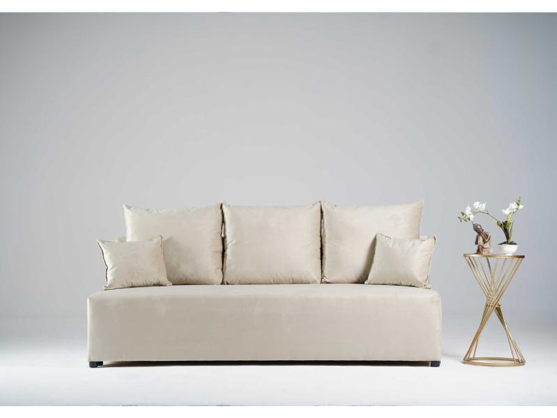 - Sofa z funkcją spania, który idealnie nada się zarówno do małego pokoju w bloku jak i w większych pomieszczeniach.