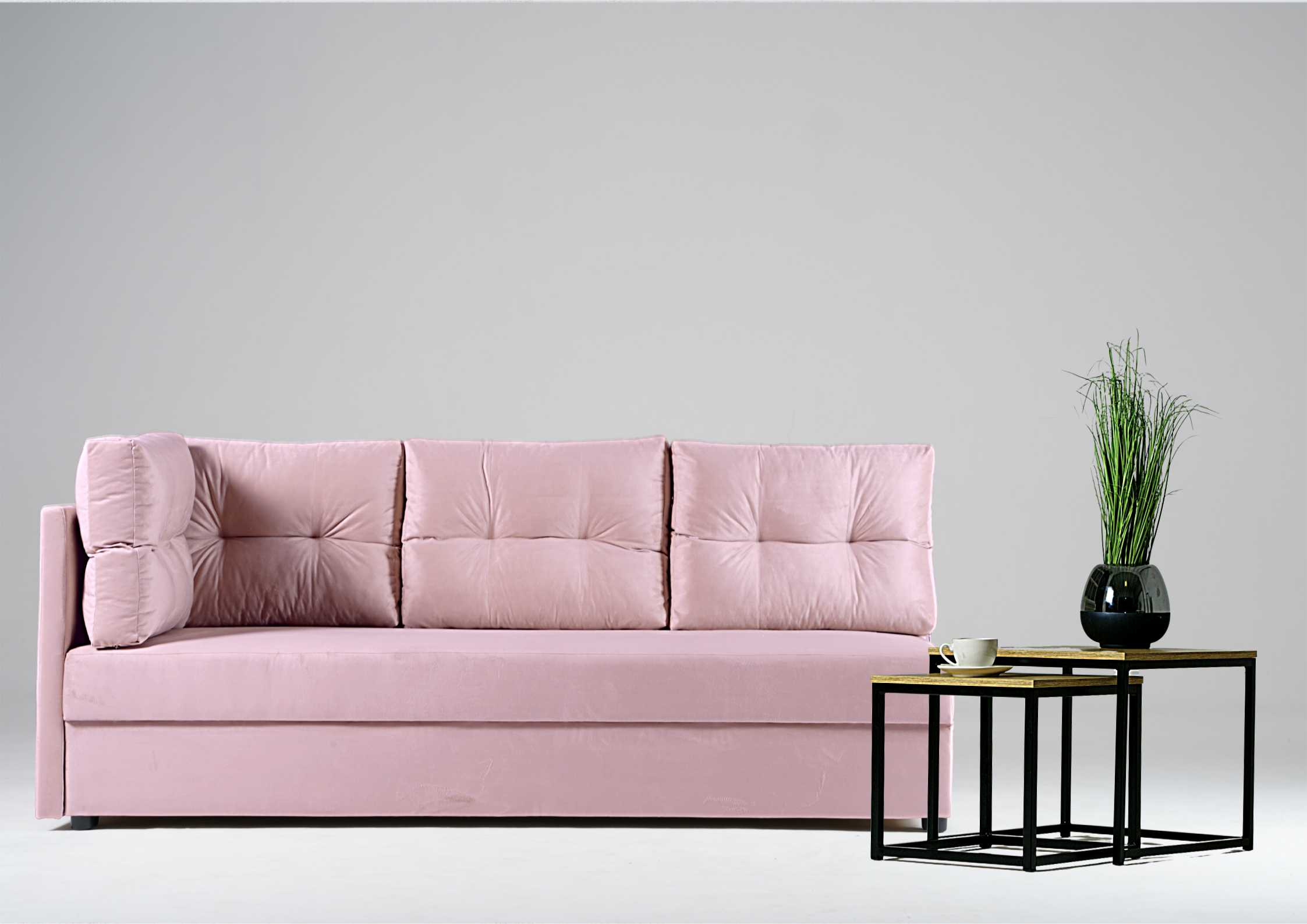 Sofa Rozkładana Trzyosobowa MALA Lewa Różowa z Funkcją Spania do Salonu