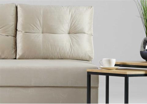 - Sofa z funkcją spania, który idealnie nada się zarówno do małego pokoju w bloku jak i w większych pomieszczeniach.