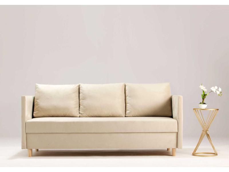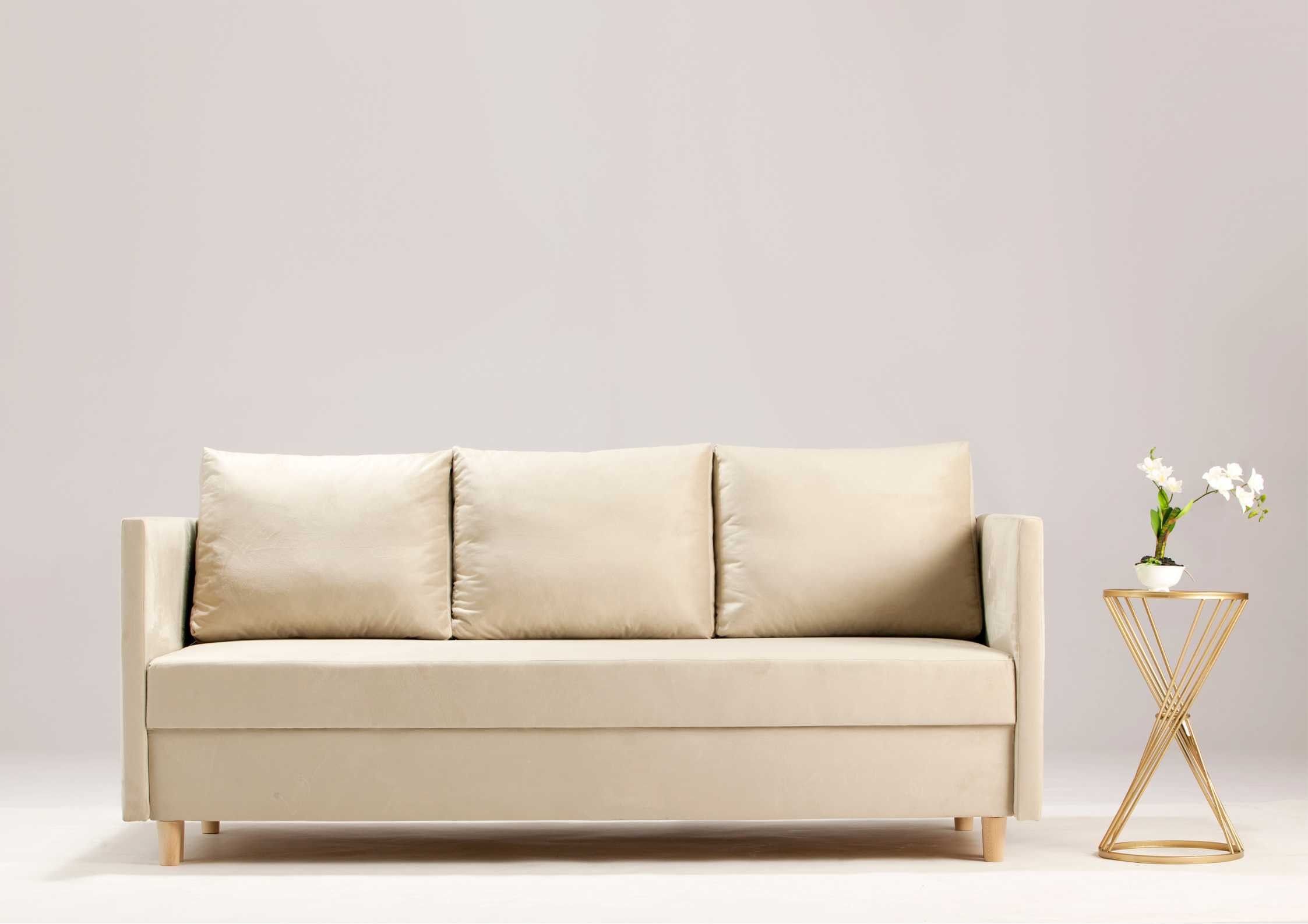 Dane techniczne: Mała Sofa Rozkładana LIMA Beżowa z Funkcją Spania do Salonu Welurowa