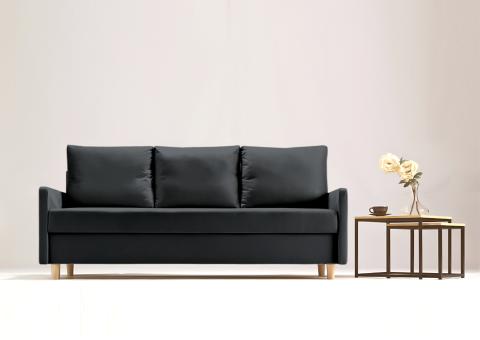 - Sofa z funkcją spania, który idealnie nada się zarówno do małego pokoju w bloku jak i w większych pomieszczeniach.