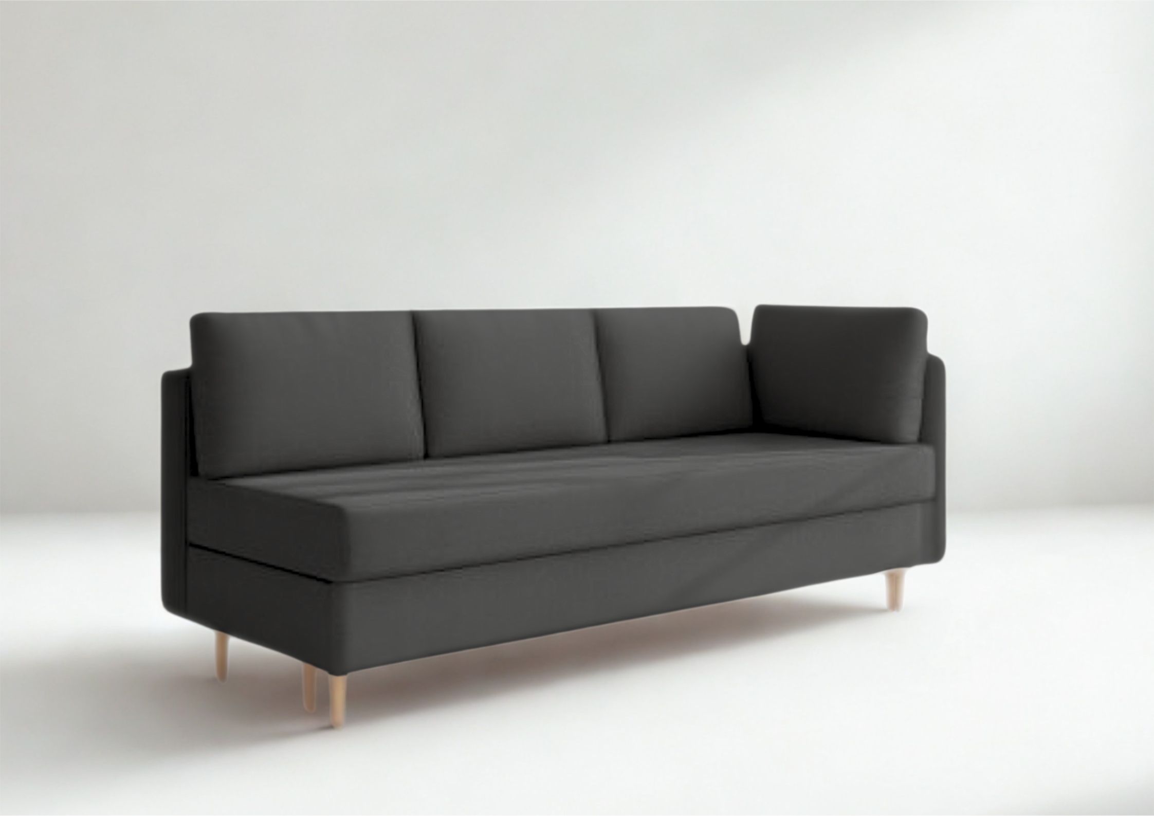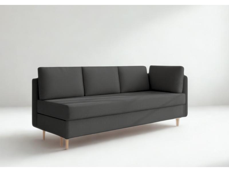 Prawa skandynawska sofa Prato wykonywana jest na drewnianych nogach w kolorze naturalnym. Możliwe jest wykonanie innego koloru nóg po kontakcie i ustaleniu z nami tej kwestii. Sofa posiada funkcję spania 190x140cm i duży pojemnik na pościel pod siedziskiem.