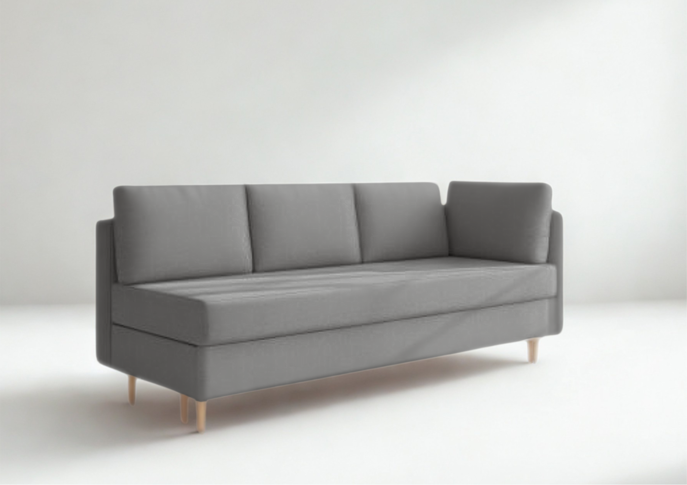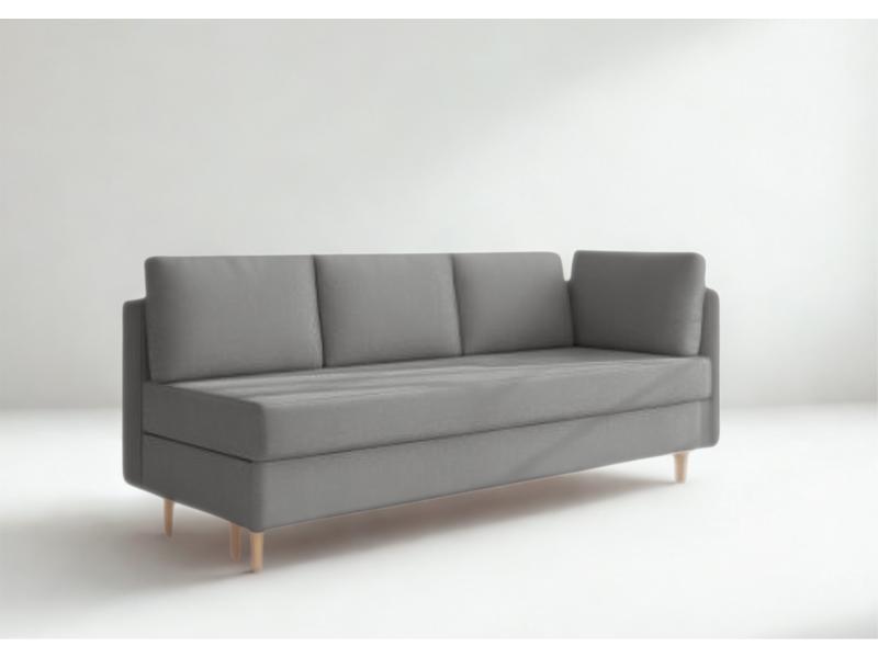 Prawa skandynawska sofa Prato wykonywana jest na drewnianych nogach w kolorze naturalnym. Możliwe jest wykonanie innego koloru nóg po kontakcie i ustaleniu z nami tej kwestii. Sofa posiada funkcję spania 190x140cm i duży pojemnik na pościel pod siedziskiem.