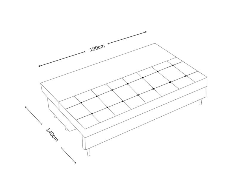 Sofa PERO to połączenie elegancji, komfortu i funkcjonalności w stylu glamour lub boho. Pikowane siedzisko i poduszki nadają jej wyjątkowego charakteru, a wysokie drewniane nogi dodają lekkości i nowoczesnego wyglądu. Dzięki funkcji spania o powierzchni 140×190 cm w kilka chwil zamienisz ją w wygodne łóżko, idealne do codziennego użytku lub dla gości. Pojemnik na pościel pozwoli Ci zachować porządek, a sprężyny bonell zapewnią trwałość i wysoki komfort siedzenia oraz snu. Sofa PERO to stylowy mebel, który doskonale dopełni każde wnętrze – od eleganckiego salonu po przytulny pokój gościnny.