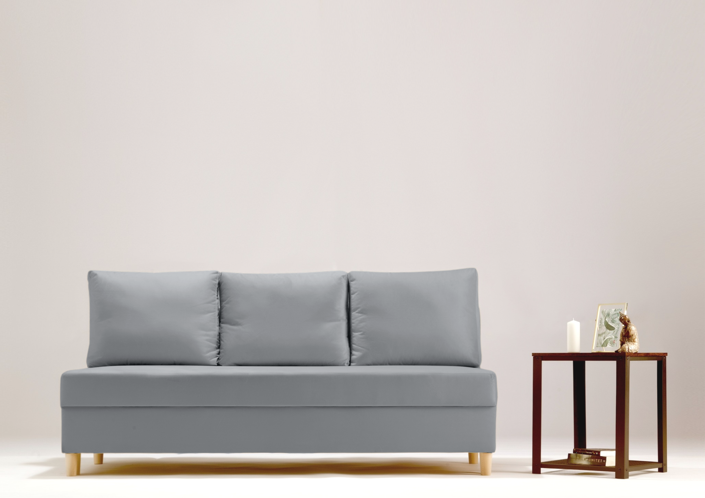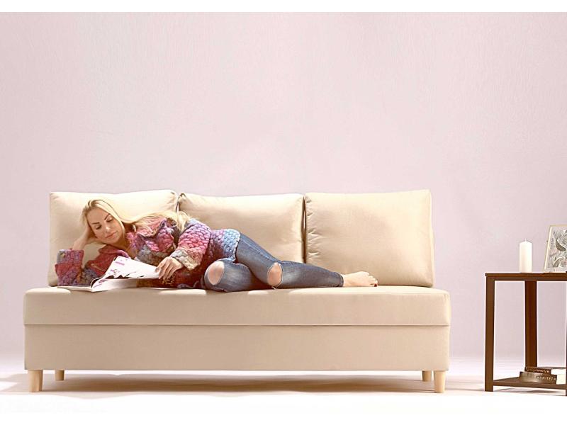- Sofa z funkcją spania, który idealnie nada się zarówno do małego pokoju w bloku jak i w większych pomieszczeniach.