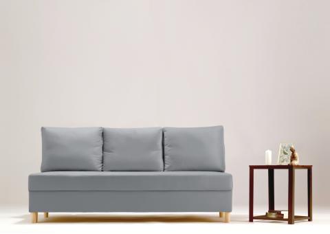 Rozkładana sofa z funkcją spania i wypełnieniem z twardej pianki oraz sprężyn bonell. Małe wymiary idealnie wpasują mebel do mniejszych pomieszczeń. Nóżki drewniane pozwolą odkurzyć pod kanapą. Skrzynia na pościel z łatwością pomieści komplet pościeli.