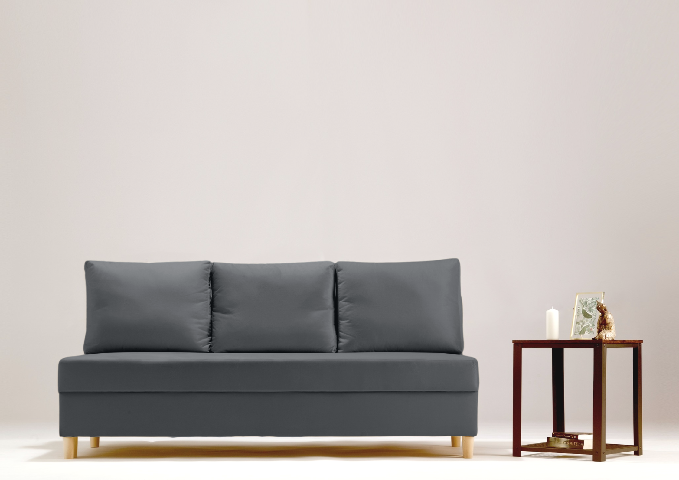 Rozkładana sofa z funkcją spania i wypełnieniem z twardej pianki oraz sprężyn bonell. Małe wymiary idealnie wpasują mebel do mniejszych pomieszczeń. Nóżki drewniane pozwolą odkurzyć pod kanapą. Skrzynia na pościel z łatwością pomieści komplet pościeli.