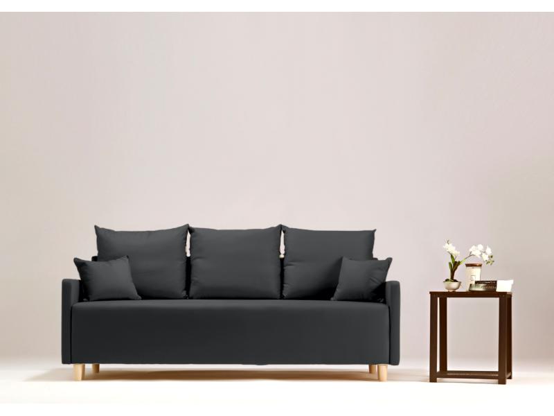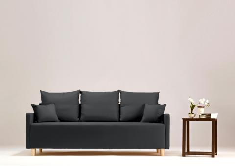 - Sofa z funkcją spania, który idealnie nada się zarówno do małego pokoju w bloku jak i w większych pomieszczeniach.