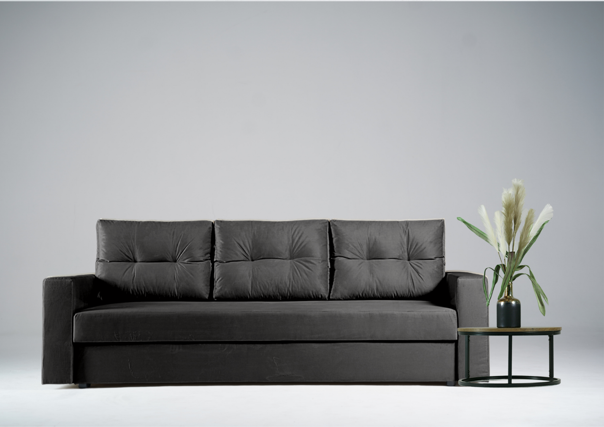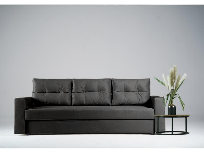 Sofa Rozkładana Trzyosobowa BORA Grafitowa z Funkcją Spania do Salonu