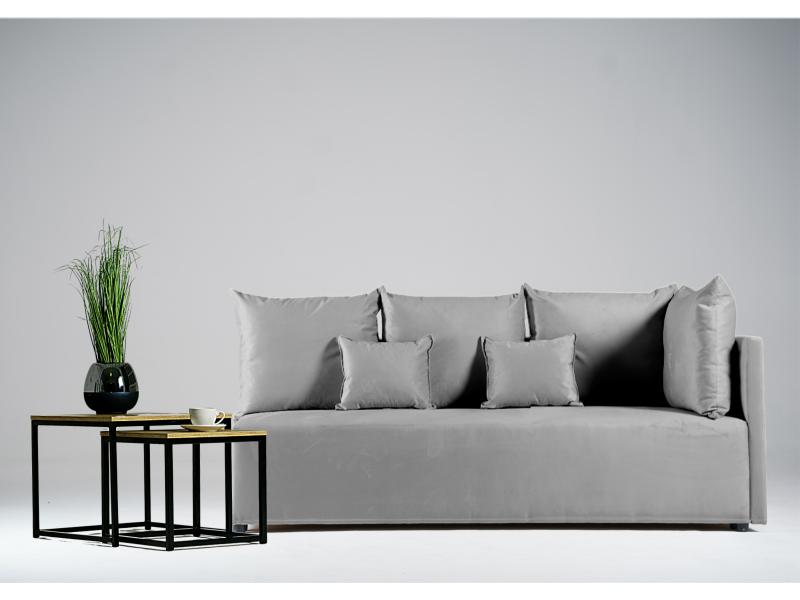 - Sofa z funkcją spania, który idealnie nada się zarówno do małego pokoju w bloku jak i w większych pomieszczeniach.
