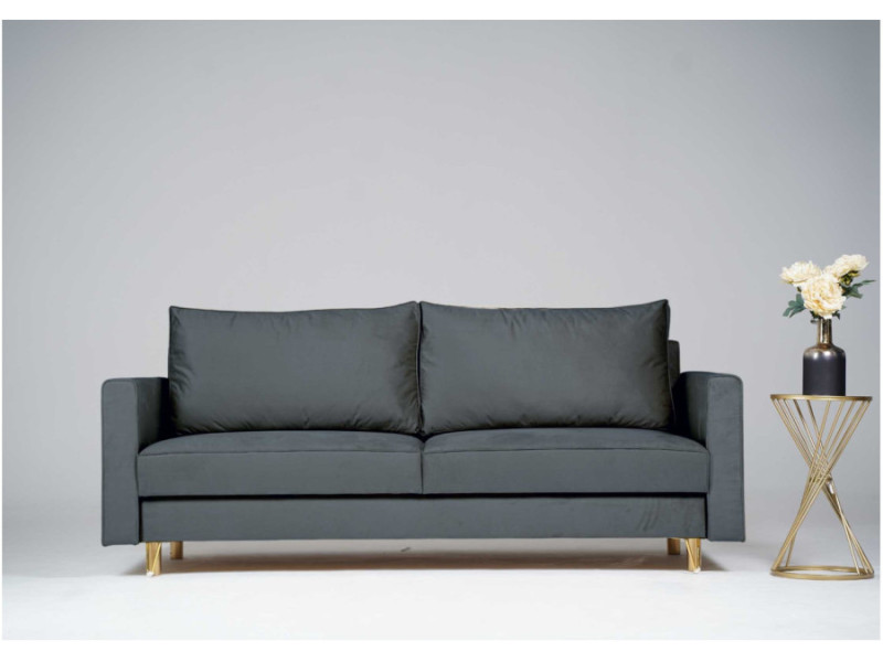 ⭐️Sofa DES Grafitowa Rozkładana Funkcja Spania Złote Nogi Glamour Elegancka