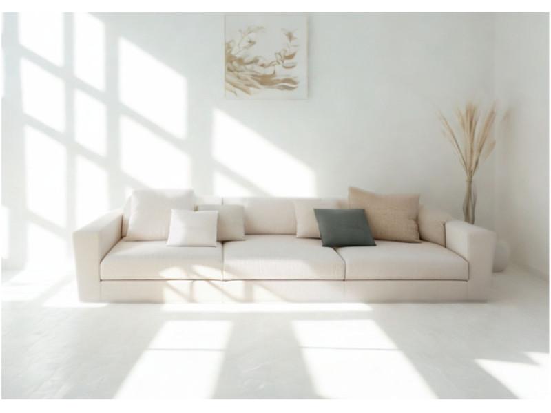 Sofa modułowa Cleo to mebel o dużej powierzchni wypoczynkowej. Pod każdym z trzech modułów zaprojektowaliśmy pojemnik do przechowywania. Siedziska w sofie są głębokie na 80cm dzięki czemu relaks po ciężkim dniu masz zapewniony. Każdy z modułów otwiera się niezależnie więc jeśli sofa docelowo będzie stała przy ścianie można otworzyć 1 z nich, oprzeć poduszkę o ścianę i wyprostować nogi jak na narożniku. Gdy rozłożysz wszystkie 3 moduły uzyskasz dużą powierzchnię spania o wielkości aż 240cm.