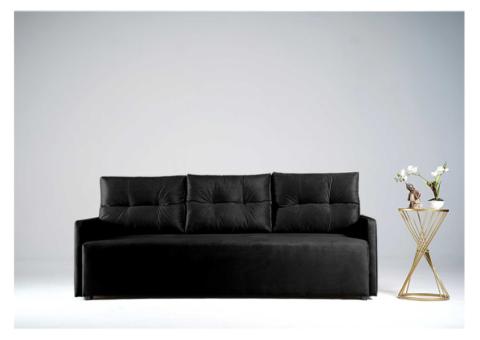 Sofa Rozkładana Trzyosobowa VERO Czarna z Funkcją Spania do Salonu Mała