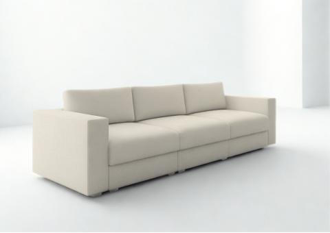 Duża modułowa sofa Life o wymiarach siedziska 240cm i głębokości 80cm. Każdy moduł to wymiar 80cm szerokości. Jest on również oddzielnie i niezależnie otwierany, dzięki czemu przez otwarcie jednego możemy uzyskać miejsce do wypoczynku z wyciągniętymi nogami. Duże poduszki oparciowe szyte na zamkach z wymiennymi wkładami.