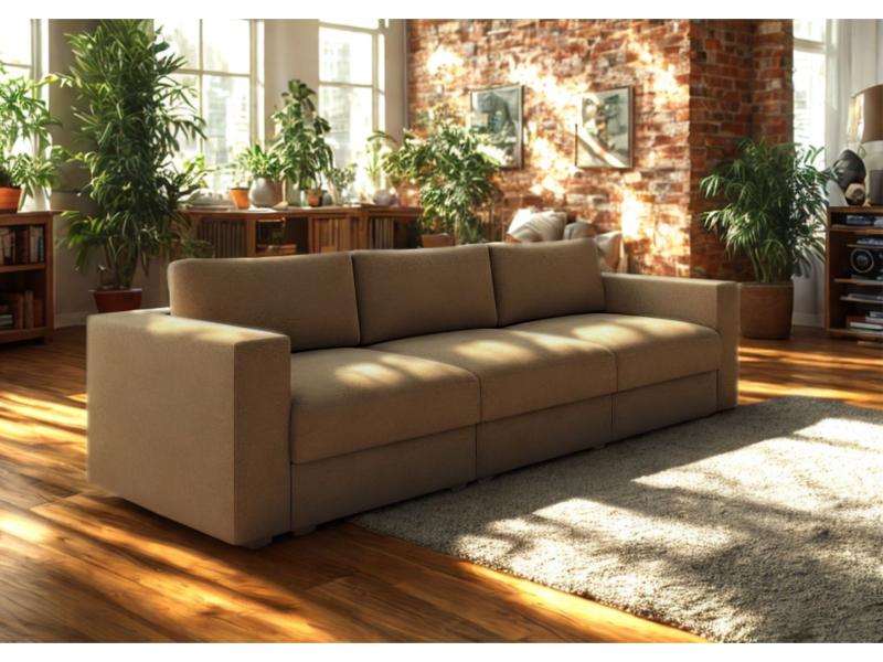- Sofa z funkcją spania, który idealnie nada się zarówno do małego pokoju w bloku jak i w większych pomieszczeniach.