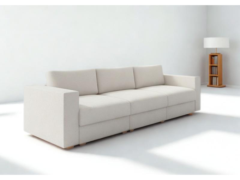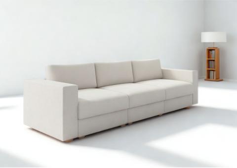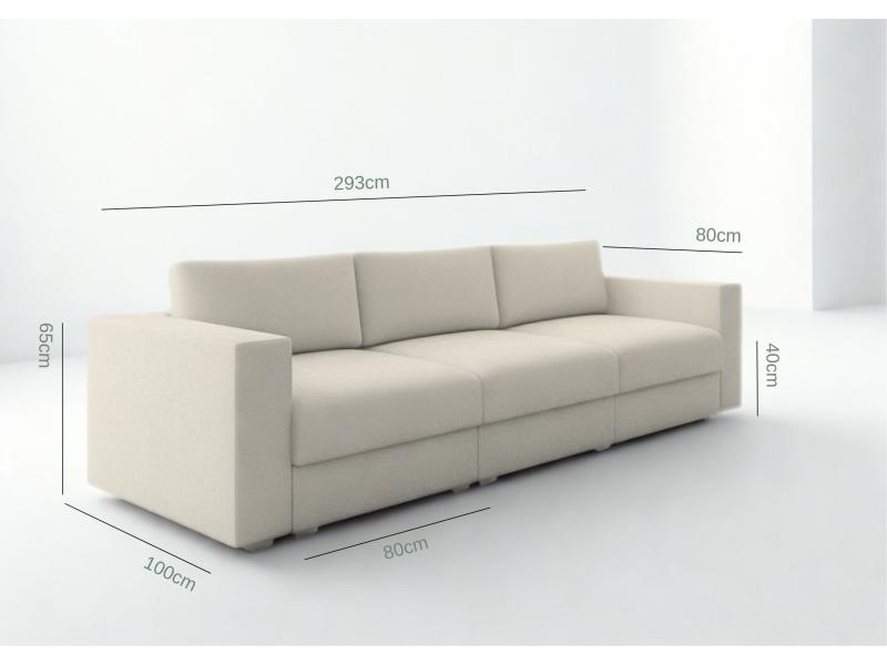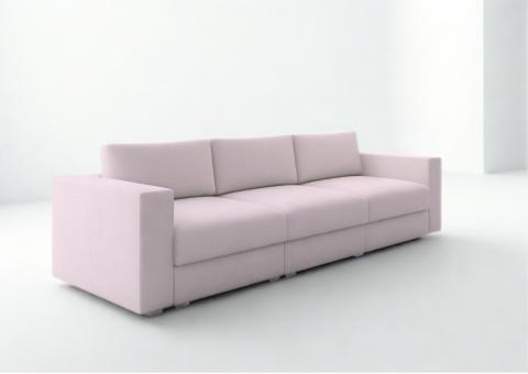 Duża modułowa sofa Life o wymiarach siedziska 240cm i głębokości 80cm. Każdy moduł to wymiar 80cm szerokości. Jest on również oddzielnie i niezależnie otwierany, dzięki czemu przez otwarcie jednego możemy uzyskać miejsce do wypoczynku z wyciągniętymi nogami. Duże poduszki oparciowe szyte na zamkach z wymiennymi wkładami.