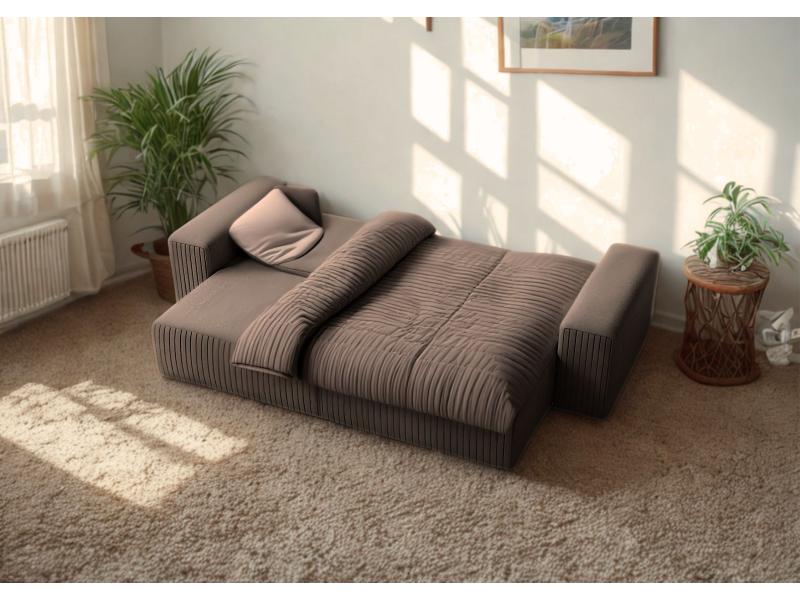 - Sofa z funkcją spania, który idealnie nada się zarówno do małego pokoju w bloku jak i w większych pomieszczeniach.