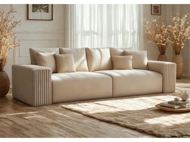 - Sofa z funkcją spania, który idealnie nada się zarówno do małego pokoju w bloku jak i w większych pomieszczeniach.