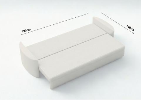 - Sofa z funkcją spania, który idealnie nada się zarówno do małego pokoju w bloku jak i w większych pomieszczeniach.