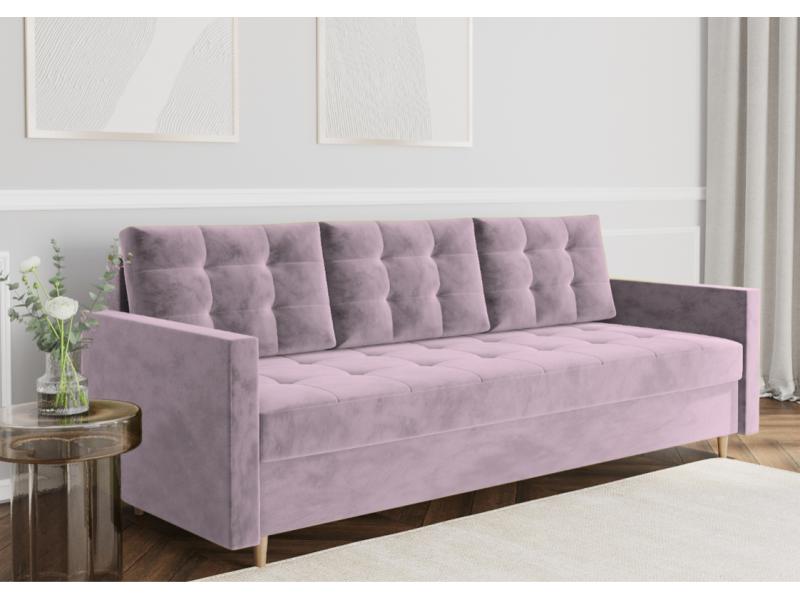 Dane techniczne: Sofa Rozkładana VIDO Różowa Pikowana z Funkcją Spania Kanapa do Salonu