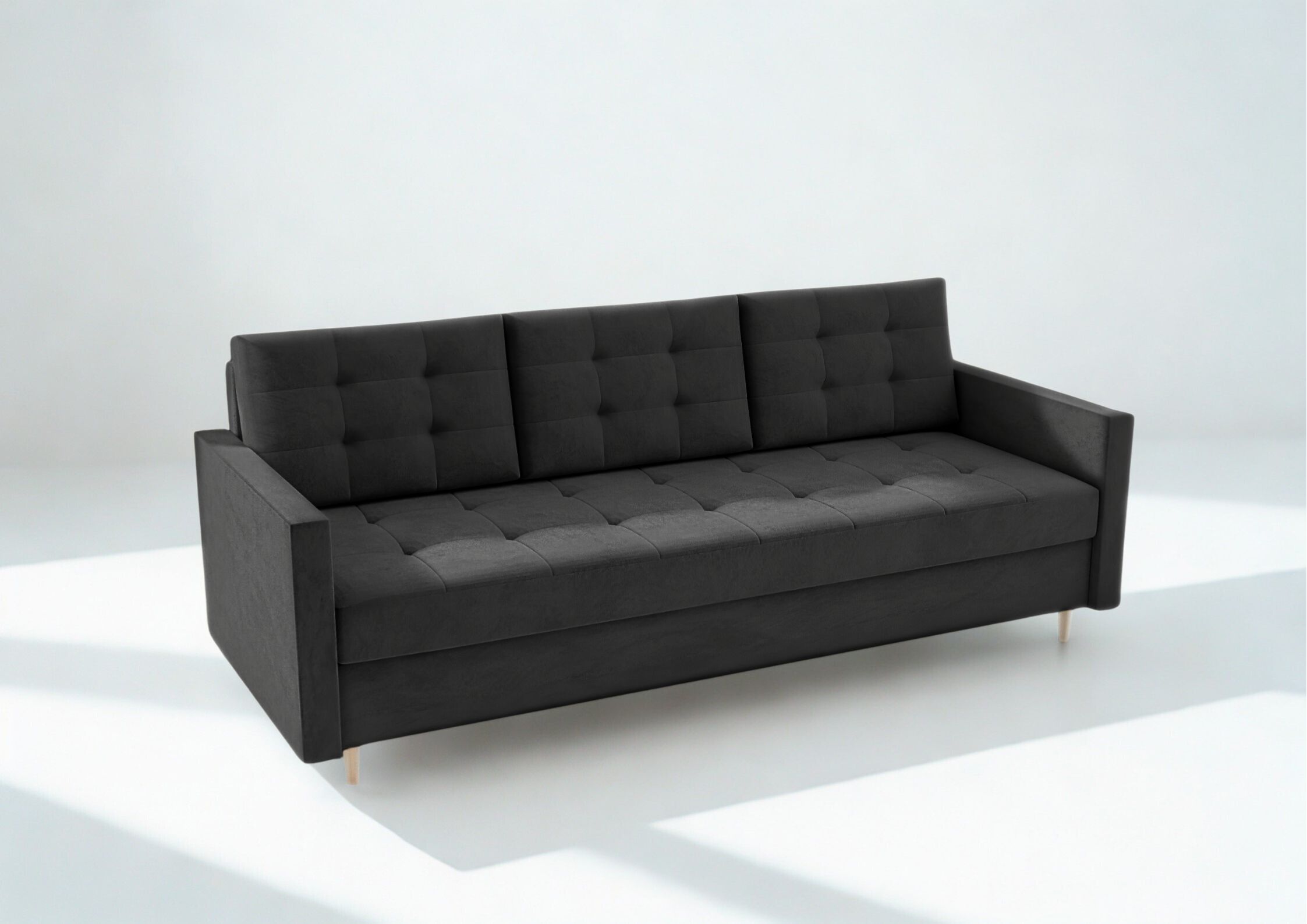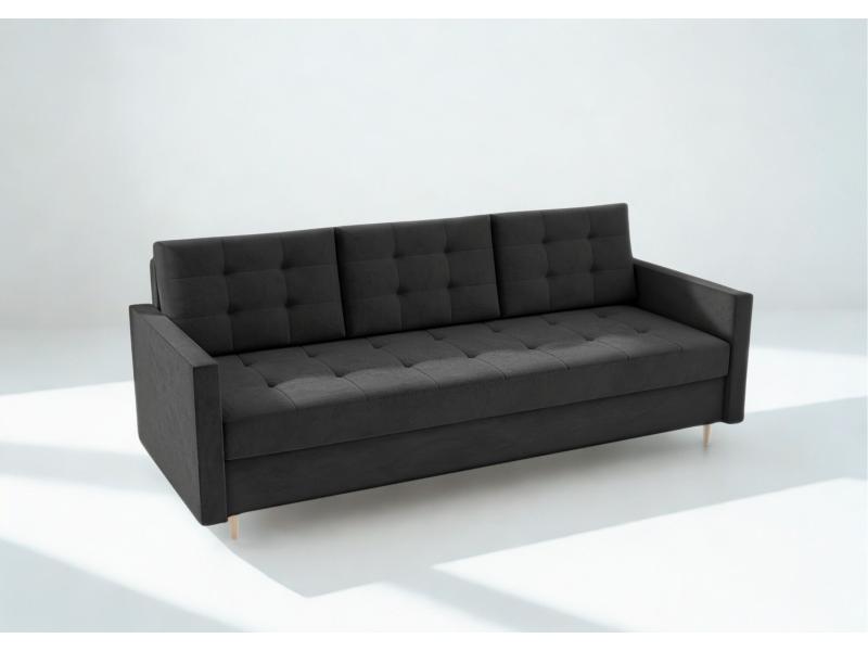 Dane techniczne: Sofa Rozkładana VIDO Czarna Pikowana z Funkcją Spania Kanapa do Salonu