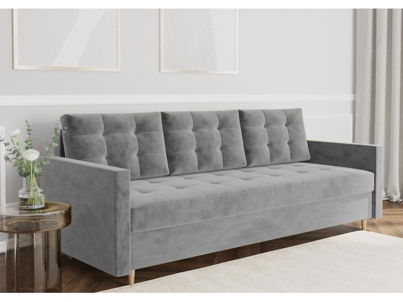 Sofa Rozkładana VIDO Szara Pikowana z Funkcją Spania Kanapa do Salonu