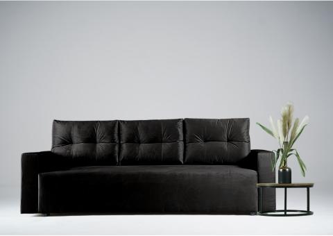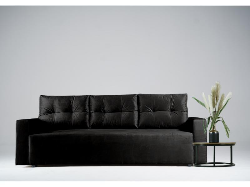 Sofa Rozkładana Trzyosobowa BONO Czarna z Funkcją Spania do Salonu Welur