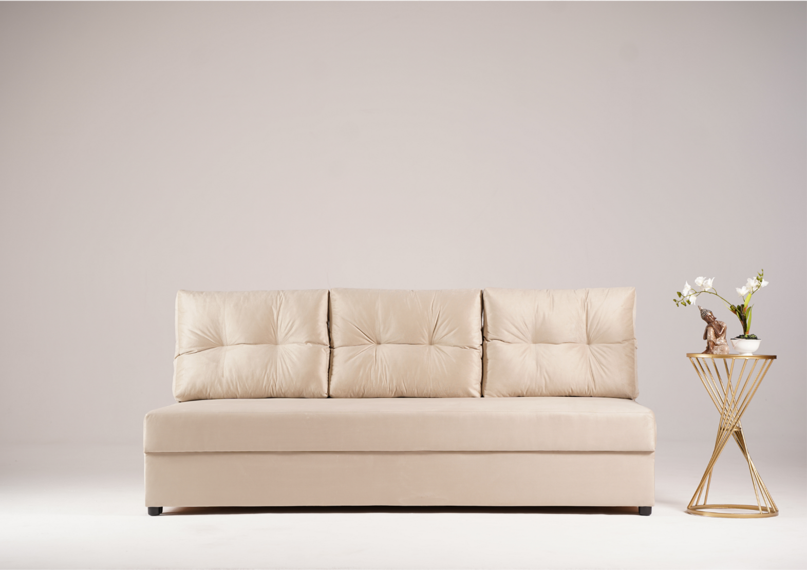 Dane techniczne: Sofa Rozkładana Trzyosobowa SKANDI Beżowa Mała z Funkcją Spania do Salonu