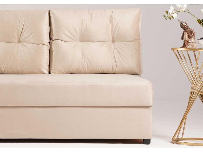 - Sofa z funkcją spania, który idealnie nada się zarówno do małego pokoju w bloku jak i w większych pomieszczeniach.