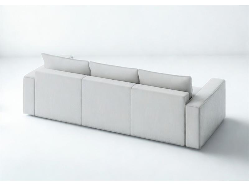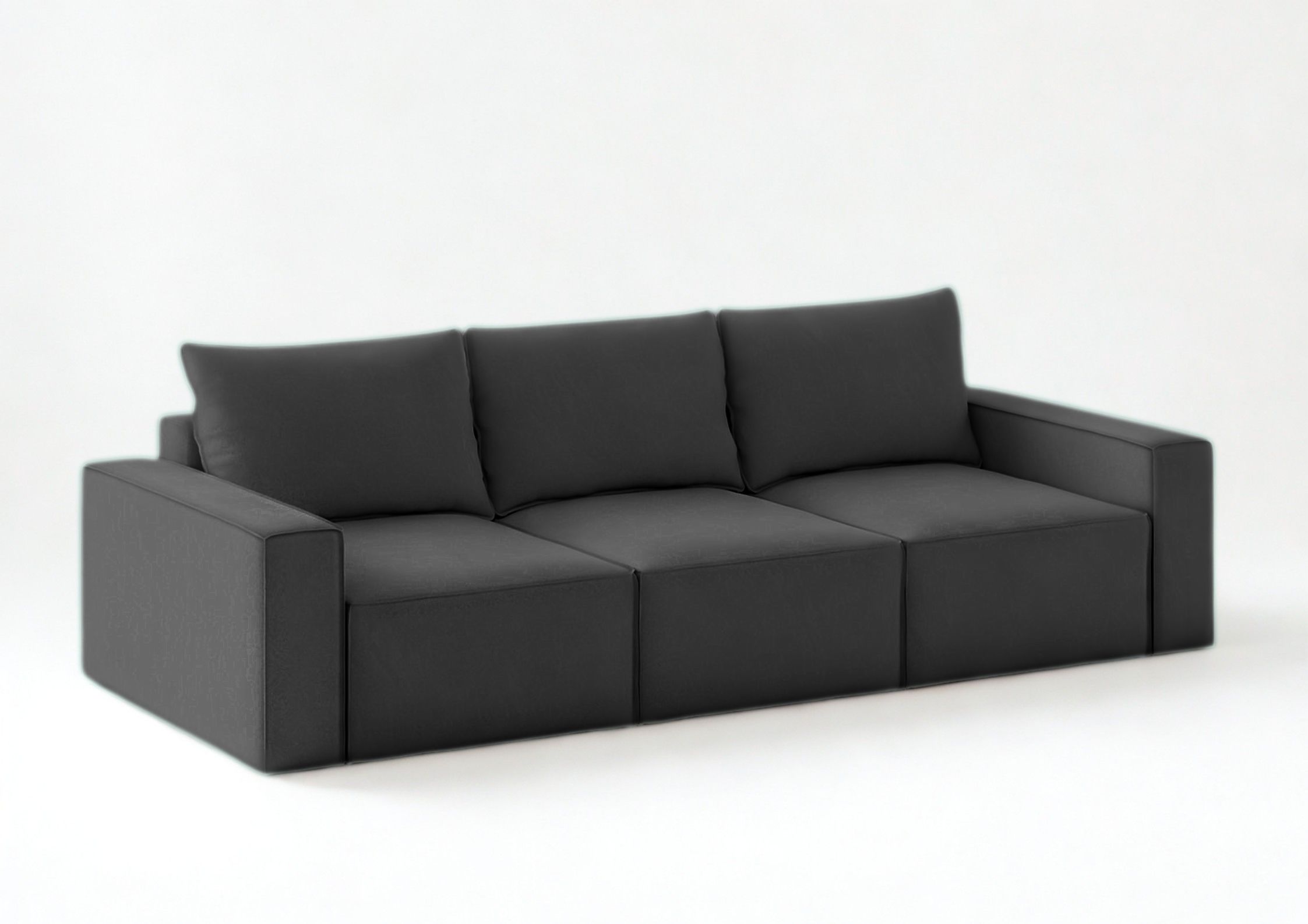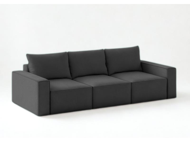 Modułowa sofa rozkładana SENS z pięknymi przeszyciami w stylu angielskim. Jest to szew zewnętrzny zastosowany na krawędziach mebla. Kanapa posiada 3 pojemniki na pościel. Po jednym pod każdym siedziskiem. Moduły możne rozłożyć niezależnie od innych. Po rozłożeniu wszystkich trzech uzyskamy dużą powierzchnię spania o wymiarach 240x160cm. Głębokość siedziska to 100cm. W zestawie znajdą Państwo 3 duże poduszki oparciowe.