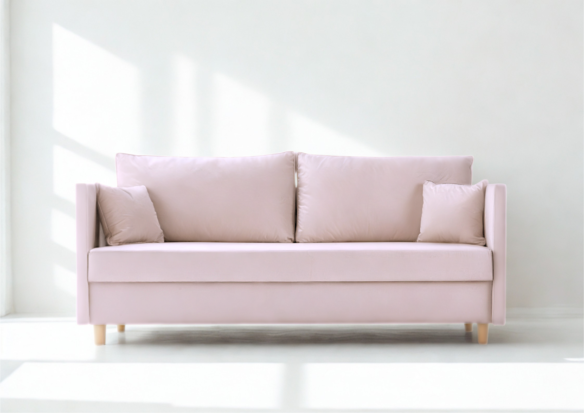 Dane techniczne: Sofa Rozkładana Trzyosobowa SECCO Różowa z Funkcją Spania do Salonu