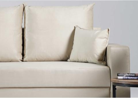 - Sofa z funkcją spania, który idealnie nada się zarówno do małego pokoju w bloku jak i w większych pomieszczeniach.