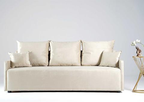 - Sofa z funkcją spania, który idealnie nada się zarówno do małego pokoju w bloku jak i w większych pomieszczeniach.