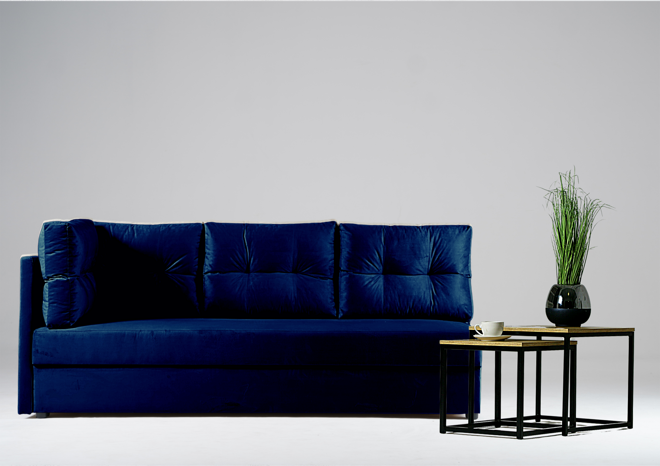 Sofa Rozkładana Trzyosobowa MALA Lewa Granatowa z Funkcją Spania do Salonu