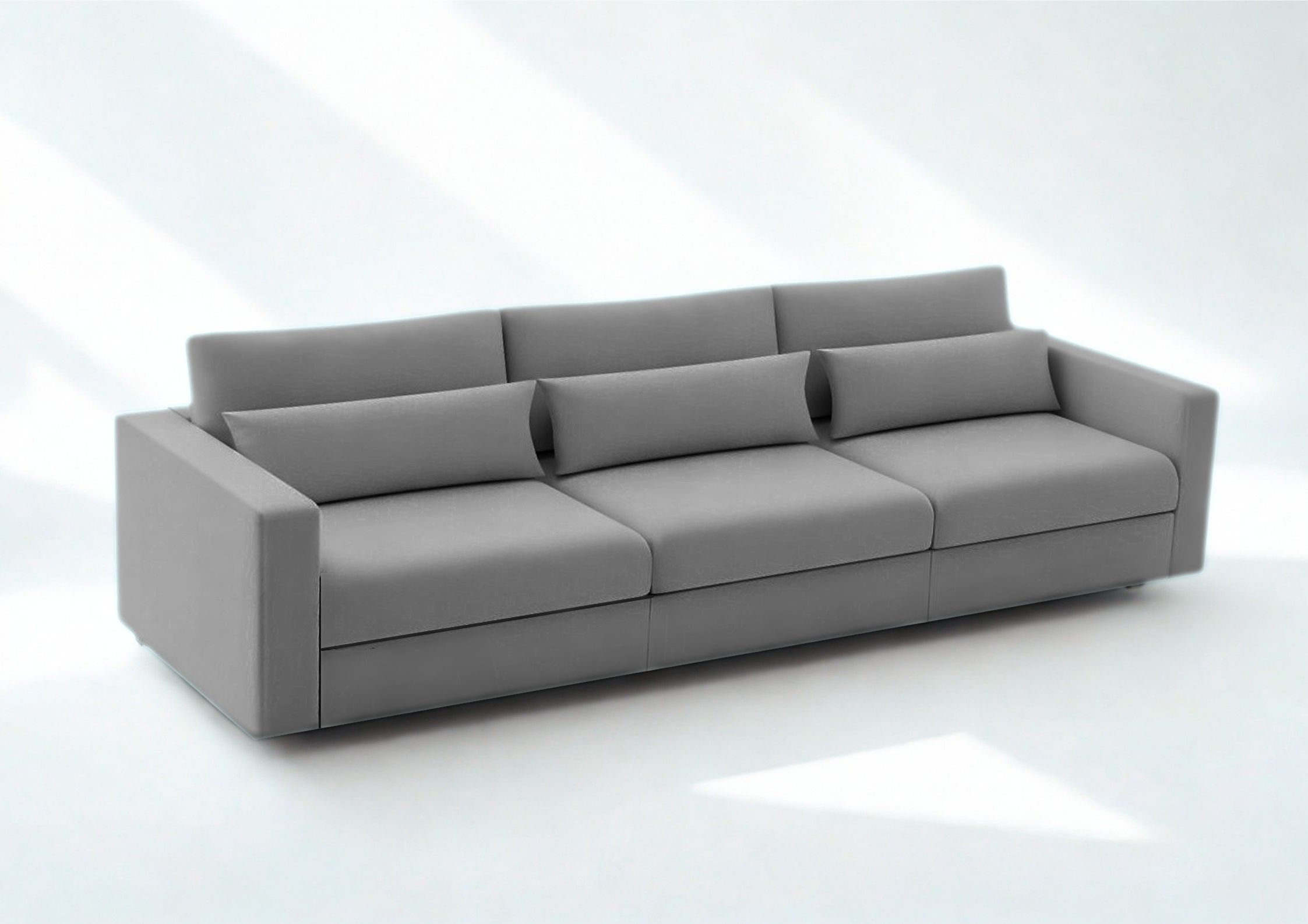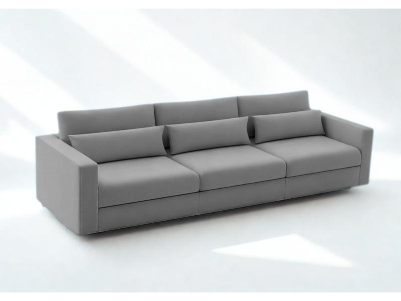 Duża elegancka sofa modułowa z poduszkami podlędźwiowymi. Każdy moduł rozkładany oddzielnie dzięki czemu stworzycie dużą powierzchnię spania - aż 240cm długości. Jest więc to kanapa idealna dla wysokich ludzi.