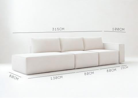 Modułowa sofa Goia to sofa, która zachwyca swoim kształtem. Idealnie nadaje się do większych wnętrz. Sofę modułową można łączyć i rozłączać tworząc z niej inne zestawy. Możesz stworzyć sofę z mniejszego i większego siedziska, oraz fotel. Dokupując u nas dodatkowe boki, poduszki zyskasz możliwość zmieniania sofy w inne mebla, w ustawieniach jakie sobie wymarzysz. Sofa modułowa jest przeszyta pięknym szwem francuskim na krawędziach. W zestawie znajdziesz 3 duże poduszki oparciowe. Kup sofę modułową Goia i ciesz się niebanalnym wyglądem i wygodą.