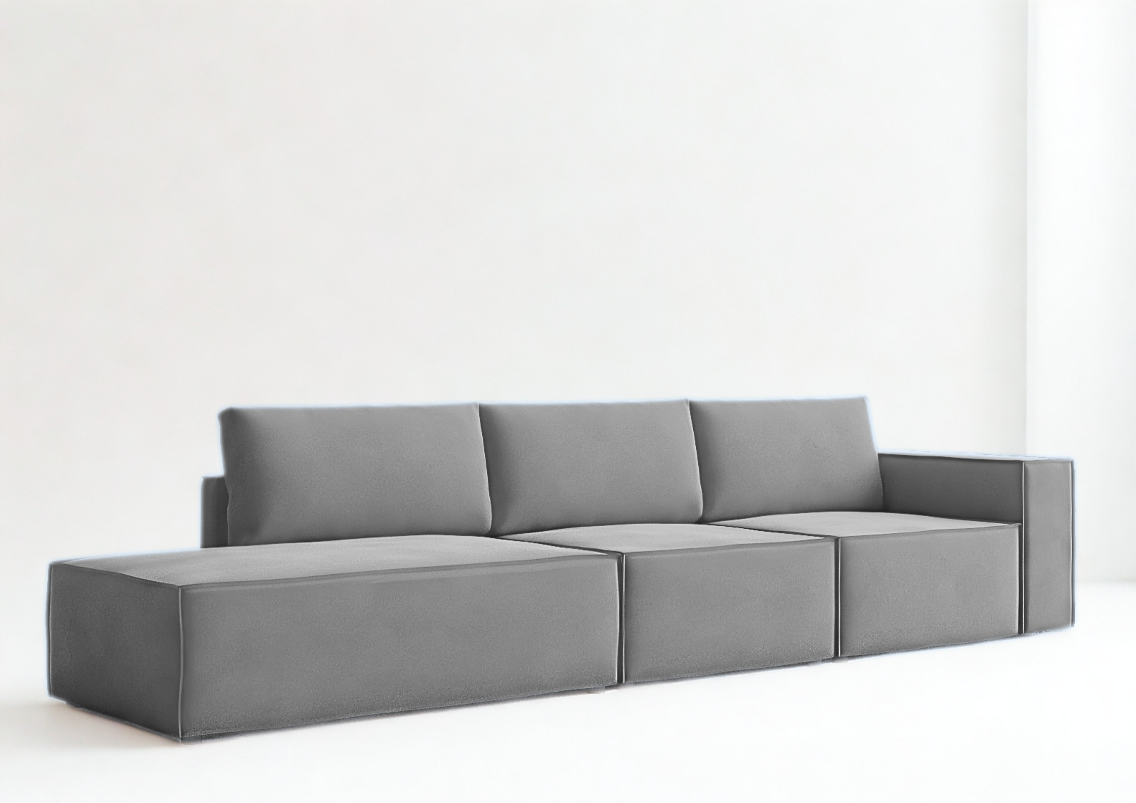 ⭐️Sofa GOIA Prawa Szara Modułowa Styl Nowoczesny Przeszycia Francuskie
