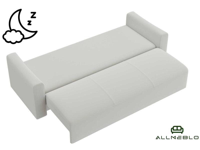 - Sofa z funkcją spania, który idealnie nada się zarówno do małego pokoju w bloku jak i w większych pomieszczeniach.