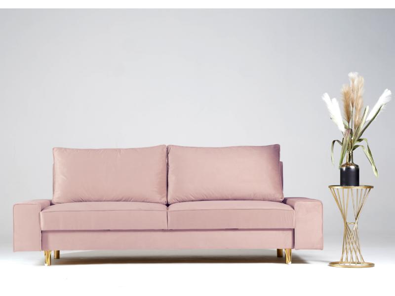 Sofa Rozkładana Trzyosobowa STINO Różowa z Funkcją Spania do Salonu