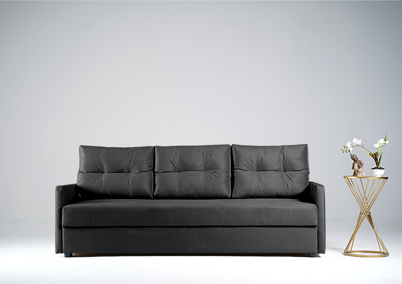 Sofa Rozkładana BONA Grafitowa z Funkcją Spania do Salonu Mała Skandynawska