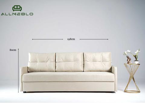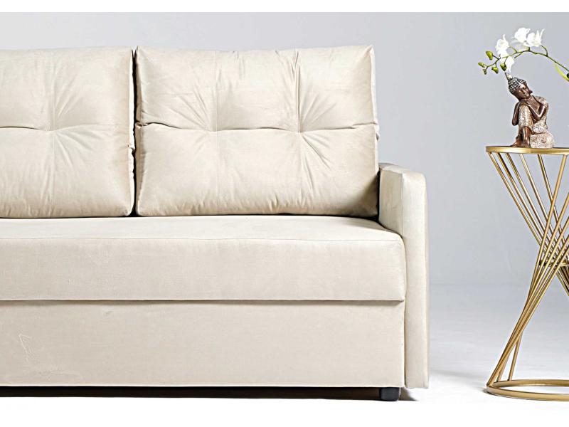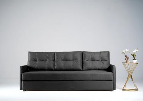 - Sofa z funkcją spania, który idealnie nada się zarówno do małego pokoju w bloku jak i w większych pomieszczeniach.