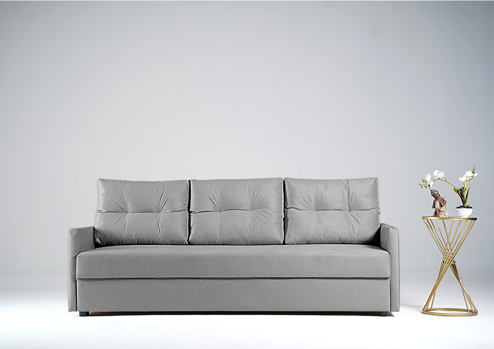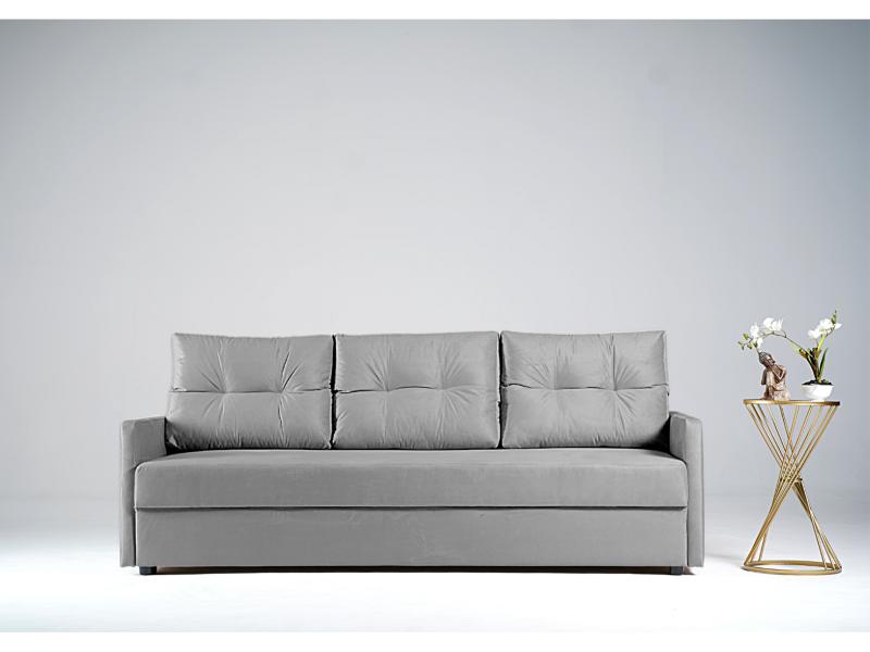 - Sofa z funkcją spania, który idealnie nada się zarówno do małego pokoju w bloku jak i w większych pomieszczeniach.