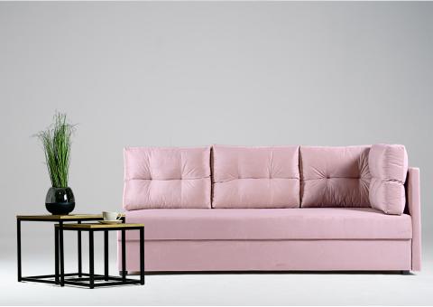 Sofa Rozkładana Trzyosobowa MALA Prawa Różowa z Funkcją Spania do Salonu
