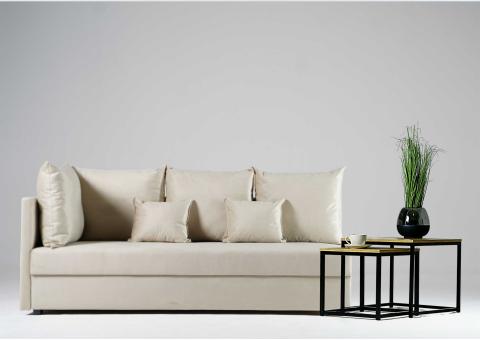 Klasyczna kanapa z funkcją spania posiada 4 duże poduszki szyte na zamkach z wymiennymi wkładami. Sofa wyposażona jest w dużą skrzynię na pościel, niskie nogi zapewniające cyrkulacje powietrza pod meblem.