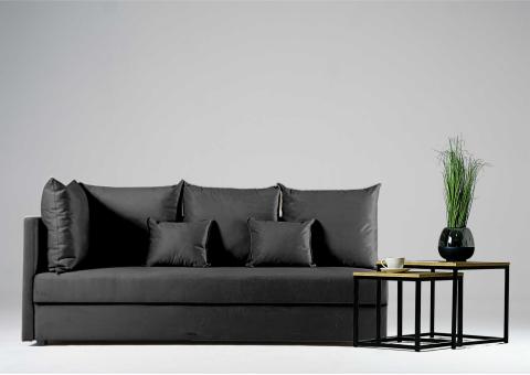 - Sofa z funkcją spania, który idealnie nada się zarówno do małego pokoju w bloku jak i w większych pomieszczeniach.